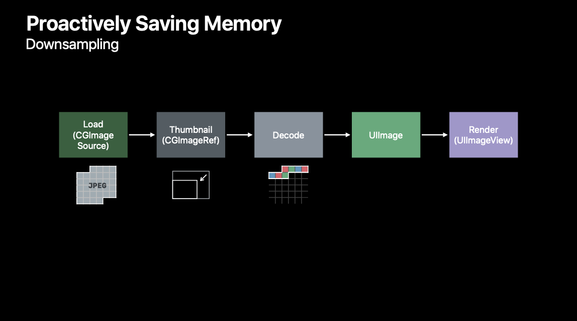 위에서 말했듯이 Rendering 단계에서 이미지를 축소하는 것은 CoreAnimation이 담당합니다.우리가 사용할 DownSampling은 Decode 단계(Image Buffer 생성) 이전에 실행됩니다.